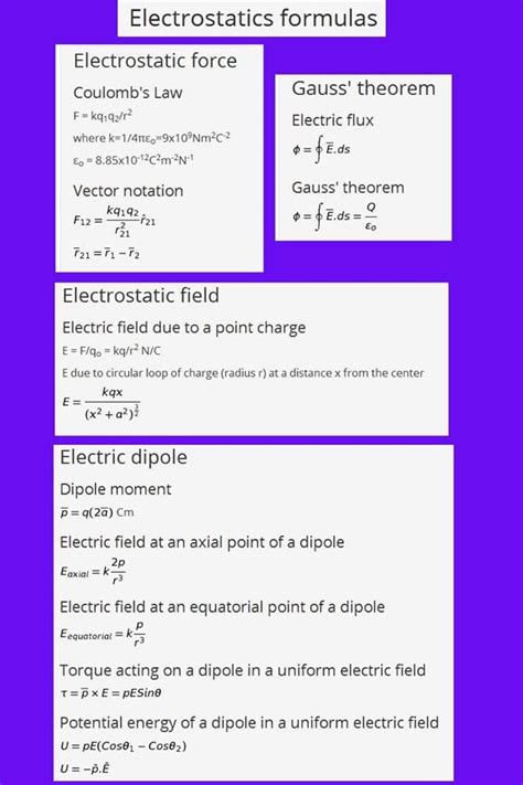 all important formulas of electrostatics