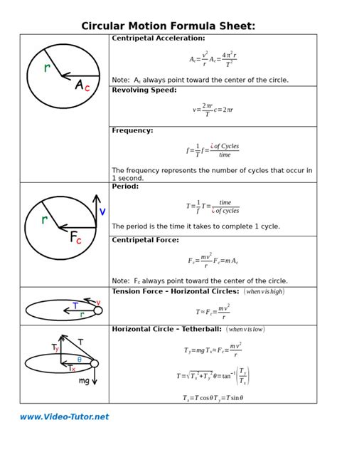 circular motion formula sheet jee pdf