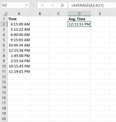 formula for calculating average time in excel