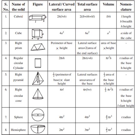 formulas in mensuration class 10