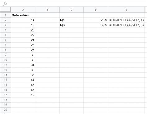 how to calculate iqr in google sheets
