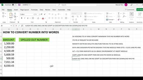 how to convert the number into words in excel