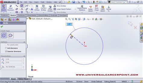 how to create a circle in solidworks