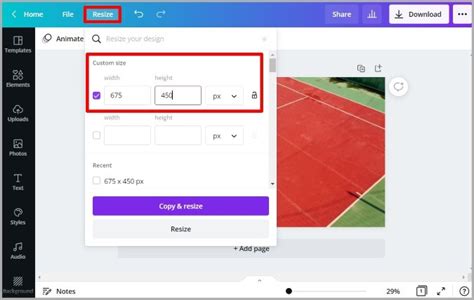 how to custom resize an image in canva