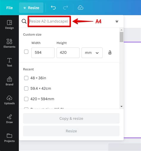 how to edit a4 size in canva