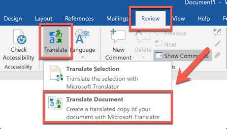 how to translate entire document in word