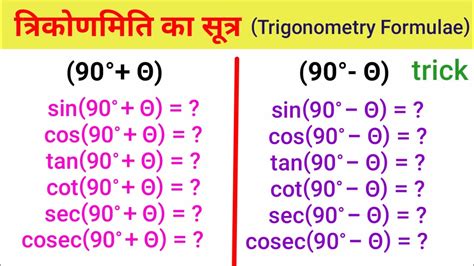 sin 90 minus theta formula