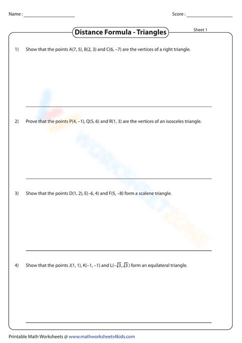 using the distance formula to classify triangles worksheet