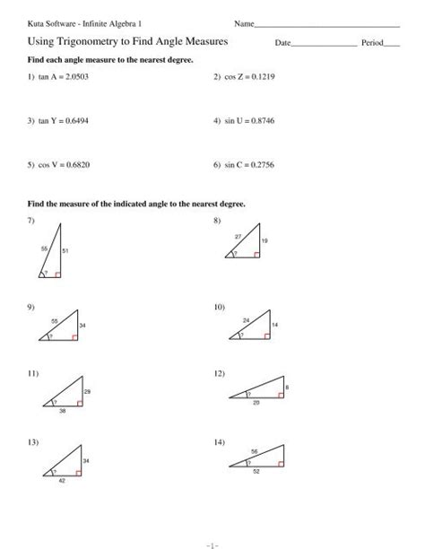 using trigonometry to find angle measures answer key