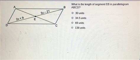 what is the length of segment eb in parallelogram abcd. There are some references to what is the length of segment eb in parallelogram abcd in this article. If you are looking for what is the length of segment eb in parallelogram abcd you've came to the right place. We have posts about what is the length of segment eb in parallelogram abcd. You can check it out below.